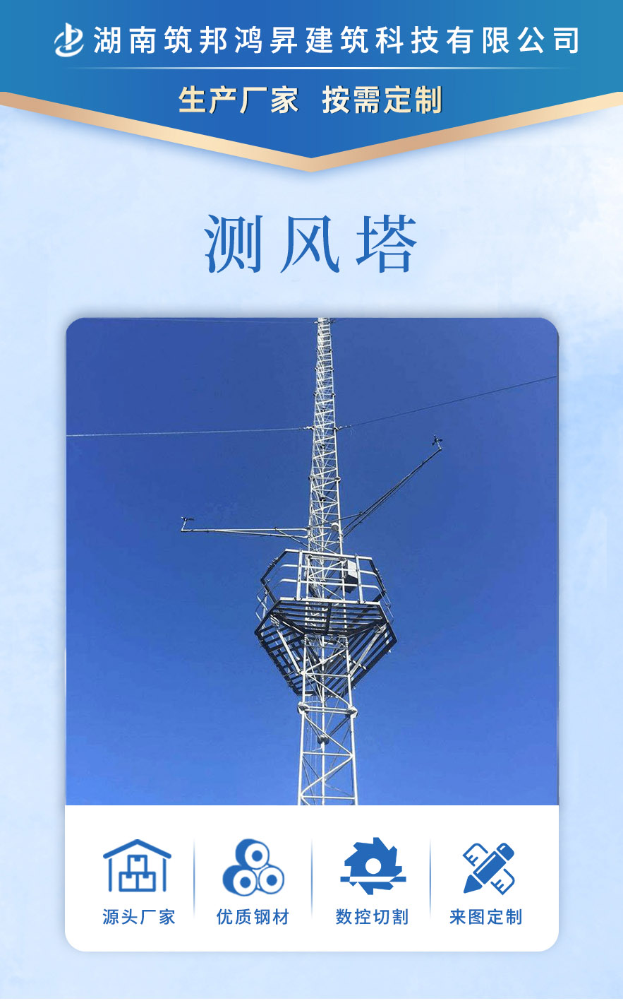 [筑邦鴻昇]測風塔等鐵塔采用激光數控沖切,熱鍍鋅工藝,實力大廠供貨準時,服務周到。